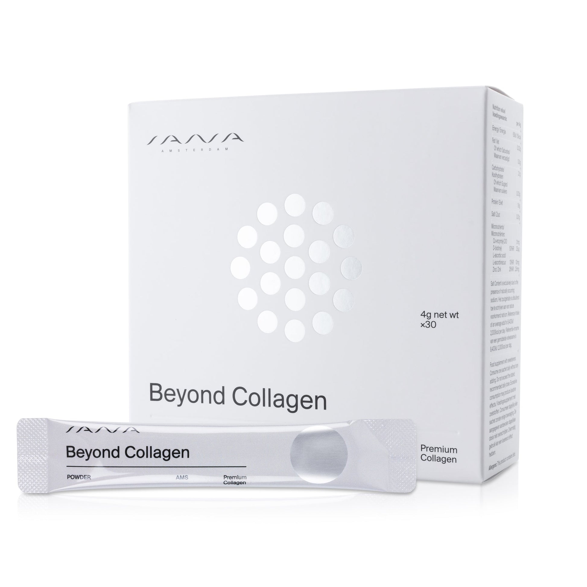 90 Powder Sachets of Beyond Collagen, one for each day. Every powder sachet contains premium quality enzymatically hydrolyzed collagen broken down into bioavailable peptides. Beyond Collagen also contains Vitamin C, Zinc, Biotin and Coenzyme Q10 for optimal benefit. Having healthy levels of Collagen is necessary for your skin, nails & hair and maintaining your natural beauty.